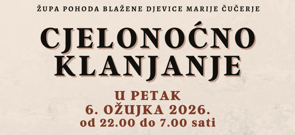 Korizmena duhovna obnova 2026. – Fra Josip Ćibarić predvodio korizmenu duhovnu obnovu u Čučerju Poruka oprosta i ljubavi: „Bog vidi u našim srcima ono što drugi ne vide“ „Jesam li spreman oprostiti?“ bila je...