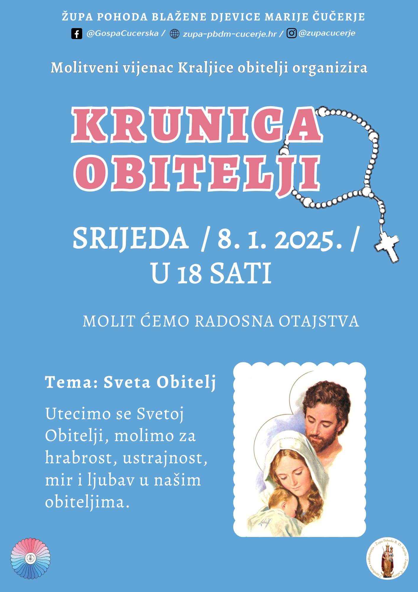 Sveci u tjednu Misne nakane – CRKVA U ČUČERJU Ponedjeljak, 6.1.2025. BOGOJAVLJENJE – SVETA TRI KRALJA 7.30 h – molitva krunice 8.00 h + Stjepan i Verica Martinec, Mirko i Ana Pluščec 10.30 h...