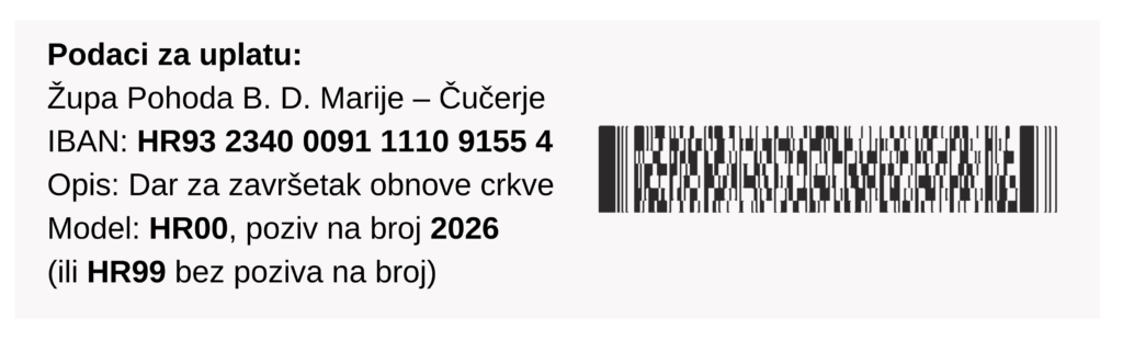 Radi transparentnosti, dar je moguće uplatiti i na župni račun.