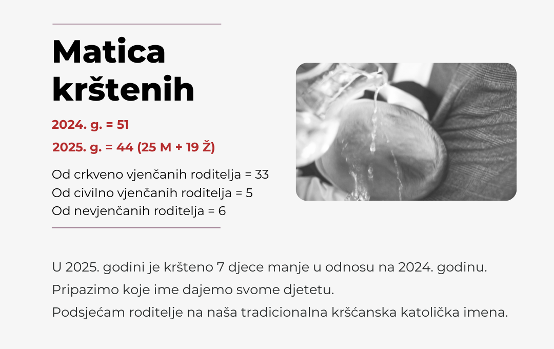 Dragi župljani i svi ljudi dobre volje! Slavimo svetkovinu Božića – rođenje našega Gospodina Isusa Krista, blagdan istinskog svjetla, nade, obitelji i zajedništva. U ovom svetom vremenu Bog nam dolazi ususret i ostaje s...