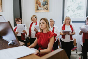 Liturgijsko pjevanje predvodio je mješoviti župni zbor „Veliča“ uz orguljašku pratnju gđe Ive Šturlić.