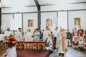 Nakon blagoslova nadbiskup Kutleša, svećenici i vjernički puk u narodnim nošnjama, uputili su se u svečanoj procesiji do Bogoslužnog prostora. Na početku misnog slavlja pozdravni govor, uime župnog pastoralnog vijeća te svih župljana iz Čučerja, Dankovca i Vidovca, uputila je pastoralna vijećnica gđa Željka Šušković, majka šestero djece: “Marija je prije osam stoljeća pohodila naše Čučerje, gdje je sagrađena prva crkva na jezeru. Kroz povijest su se gradile i obnavljale crkve, a najveće štete bile su od potresa. Tako je i u potresu prije pet godina stradala naša stara župna crkva i velik dio župe. Potresli smo se tada fizički, materijalno i duhovno. Najednom je naša zajednica postala stado bez pastira jer je tadašnji župnik vlč Dragutin Mostečak otišao u mirovinu. Crkva je bila oštećena, mnogi su ostali bez krova nad glavom, a čovjek je bježao od čovjeka zbog korona krize. Najprije je trebalo zbrinuti goli život. Župni Caritas, koji je do tada skrbio o tridesetak obitelji, u samo nekoliko dana pomagao je više od dvjesto obitelji. Odazvali su se mnogi donatori i pružena je prva pomoć potrebitima. Nakon nekoliko mjeseci, naš vlč. Marko Torbar, krašićki sin, prihvatio je služiti u svojoj prvoj župi bez crkve i doma, potpuno se uzdajući u Božju Providnost, nastavljajući duh koji je u Krašiću oblikovao i blaženi Alojzije Stepinac. On je zajedno sa župnim Caritasom, u suradnji s Caritasom Zagrebačke nadbiskupije i brojnim dobročiniteljima, u proteklih pet godina pomogao obnovu više od pedeset kuća. U isto vrijeme započela je gradnja novog bogoslužnog prostora, u kojem se danas nalazimo, na čemu smo posebno zahvalni Zagrebačkoj nadbiskupiji.”
