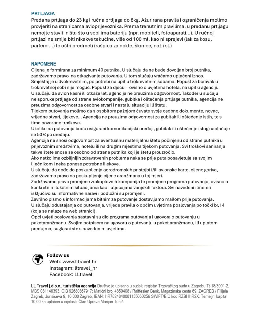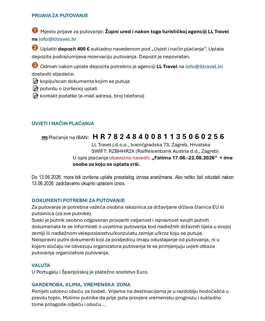 Nakon prijave i uplate depozita, daljnje informacije i organizaciju vodi agencija.